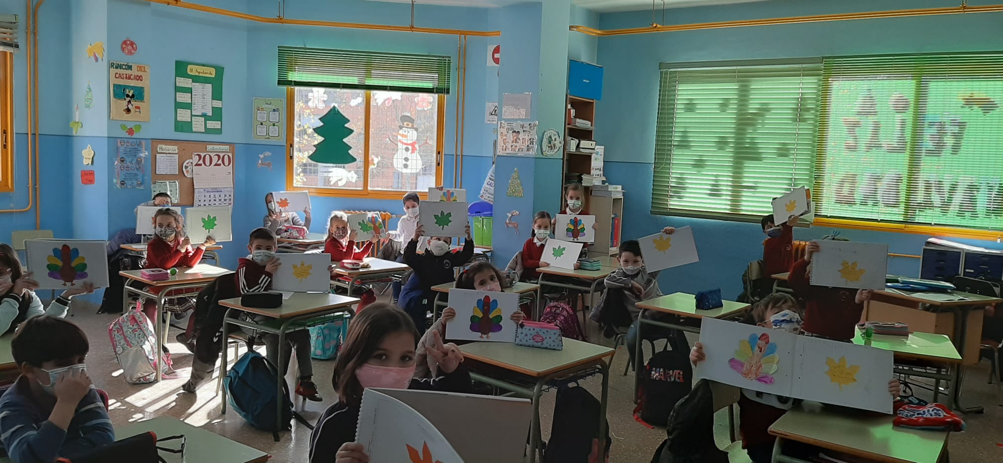 Los alumnos y alumnas de 2º de Educación Primaria también realizaron la hoja de thanksgiving y el pavo. Ellos dan las gracias por venir al colegio, tener familia que les quiere, poder estar con sus compañeros y verles todos los días... También quisieron posar con el pavo que habían coloreado ¡Qué chulos os quedaron!